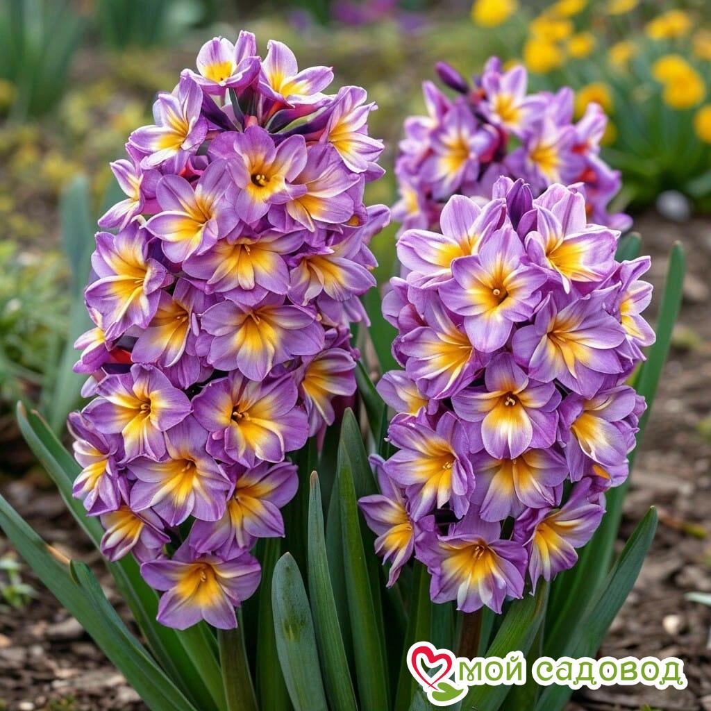 - Изысканная окраска: главная особенность этого сорта — его неповторимая и запоминающаяся окраска. Цветки гиацинта Пинк Перпл обладают нежным светло-фиолетовым цветом, напоминающим цветущую лаванду на закате, а середина цветка украшена ярким жёлтым пятном, словно солнечный луч, пробивающийся сквозь фиолетовое облако. Эта контрастная и гармоничная комбинация цветов делает гиацинт Пинк Перпл особенно привлекательным и эффектным.